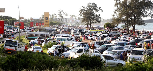 Foleni ya kuingia kando kando ya ufukwe nayo ilikuwa kubwa kiasi ambacho magari mengine yalipita kwa taabu kuendelea na safari zake.