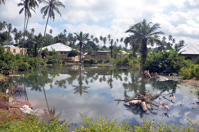 Shimo lililokua likichimbwa mchanga zamani likionekana kujaa maji machafu ambayo hutiririka kwenye kiwanja maalum cha kusherehekea sikukuu mbalimbalinkatika kijiji cha Kianga na kusababisha kushindwa kufanyika sherehe hizo.