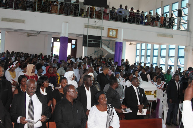 Ibada ya kuombea mwili wa Waziri wa Habari, Utamaduni, Sanaa na Michezo Mhe Harisson Mwakyembe, Marehemu Linah Mwakyembe ikiendelea katika kanisa la KKKT Kunduchi, Dar es Salaam kabla ya mwili huo kusafirishwa kwenda kyela, Mbeya kwa ajili ya mazishi.